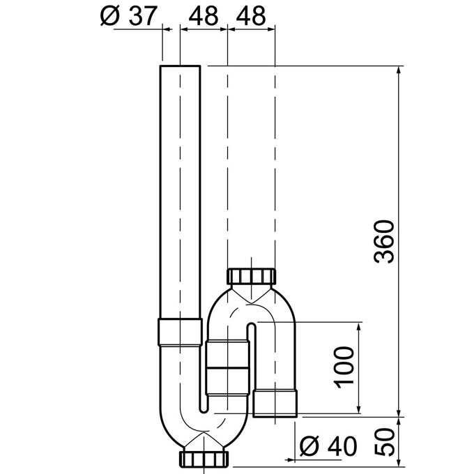 Siphon simple crosse, sortie verticale pour machine à laver