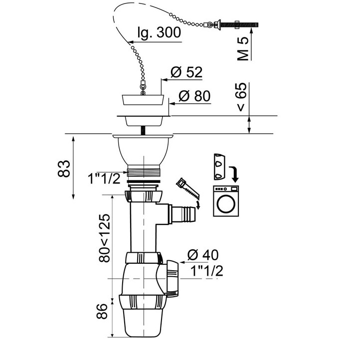 Ensemble complet pour évier 1 bac Ø60 mm (grès ou synthèse)