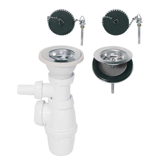 Ensemble complet pour évier 2 bacs communicants Ø60 mm (grès ou synthèse)