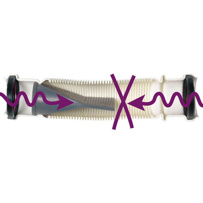 Raccordement "Push-Fit" (à emboîter) sans vissage ni collage, les joints à double lèvre et la bague de maintien assurent une étanchéité parfaite.