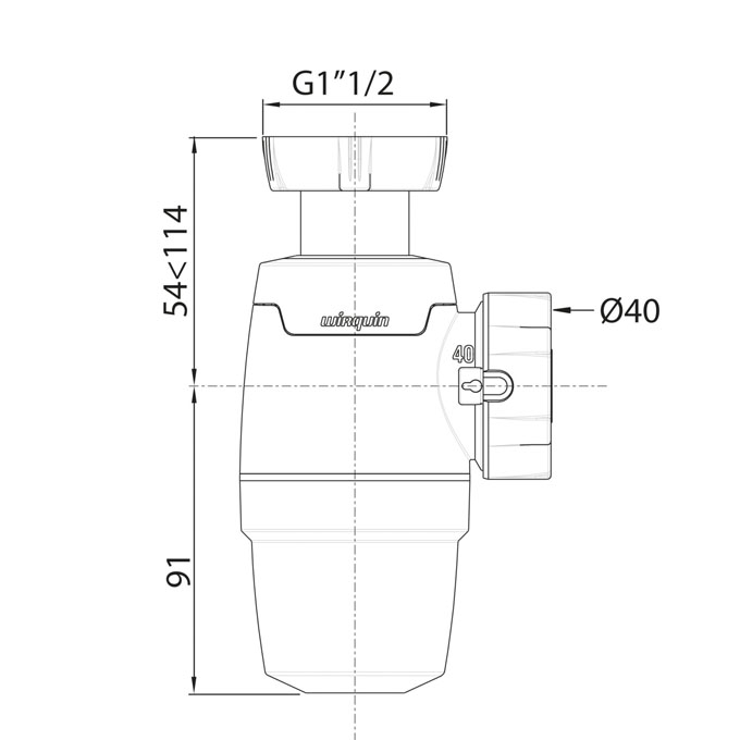 Sortie Ø40 mm, fermeture 1/4 de tour.