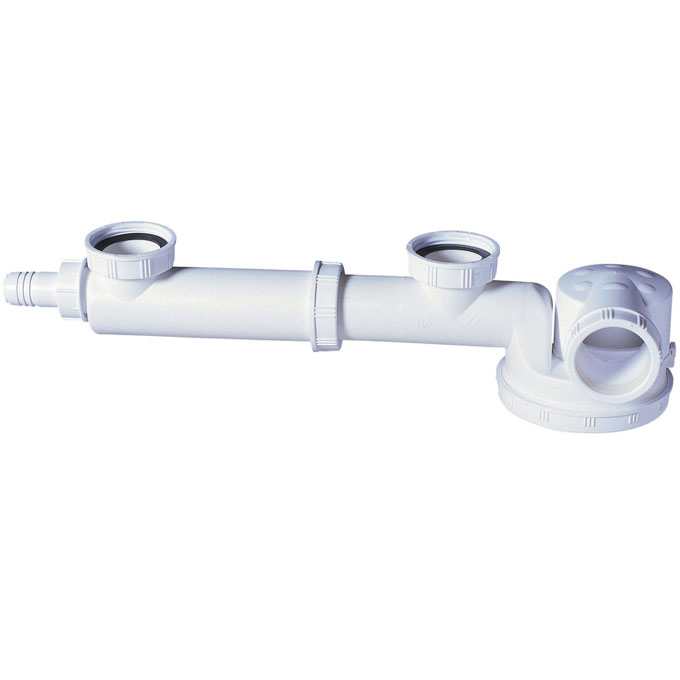 ESPACE, tubulure de raccordement avec siphon extraplat intégré pour évier 2 bacs