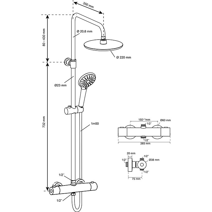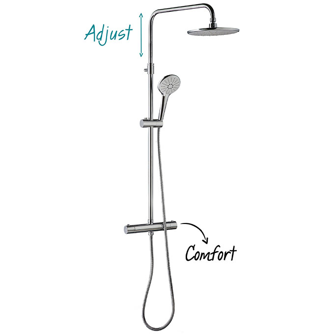 Colonne de douche ajustable en hauteur après installation grâce à son bras télescopique.