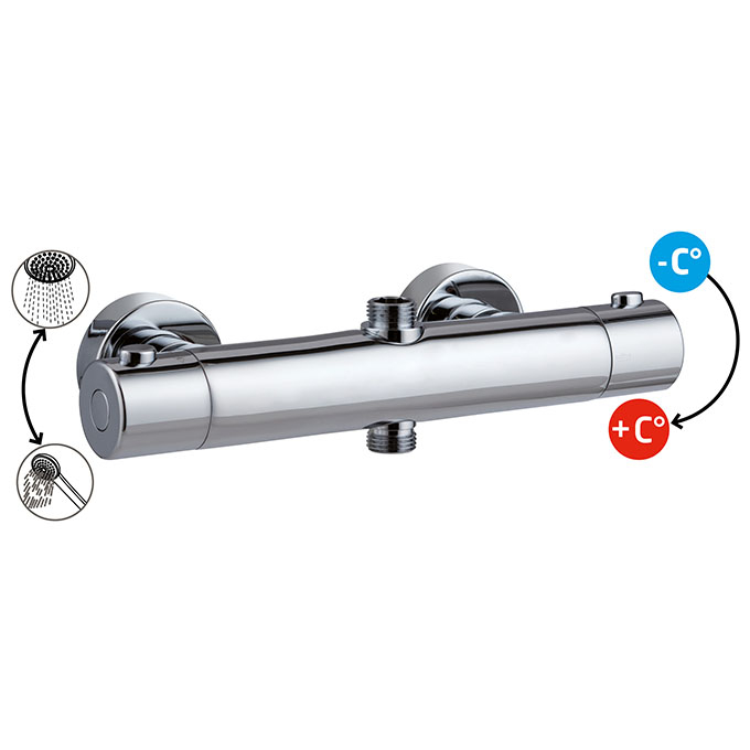 Mitigeur thermostatique avec système de blocage anti-brûlure à 38°.