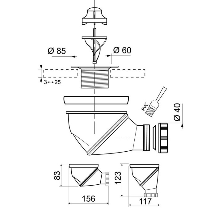 La bonde est équipée d'un filtre amovible permettant de retenir les cheveux et autres déchets.FAIBLE ENCOMBREMENT