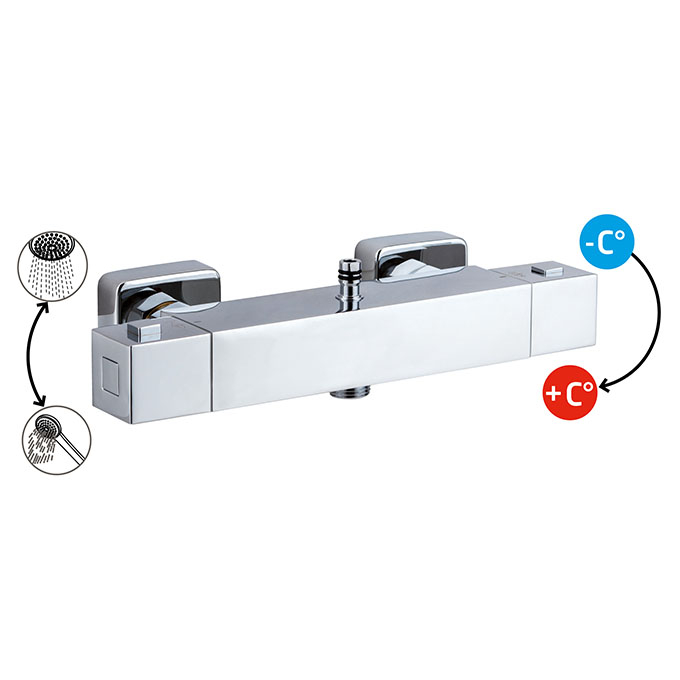 Définit précisément et en toute sécurité la température et le débit de l'eau grâce au mitigeur thermostatique et à la fonction de sécurité à 38 °C.