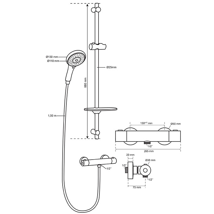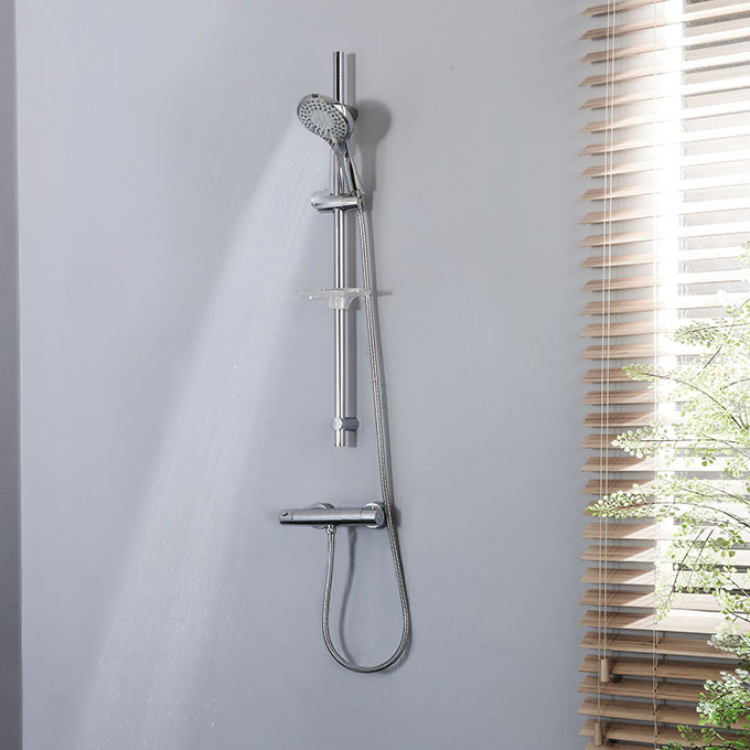 Idéale pour la rénovation de petits espaces grâce au support mural réglable en hauteur.Grande douchette, qui peut être utilisée comme pomme de douche.