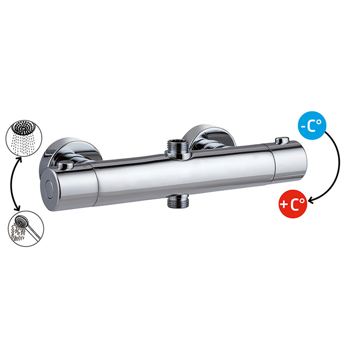 Mitigeur thermostatique avec système de blocage anti-brûlure à 38°.