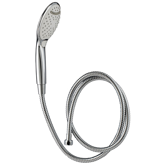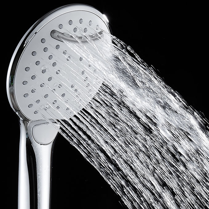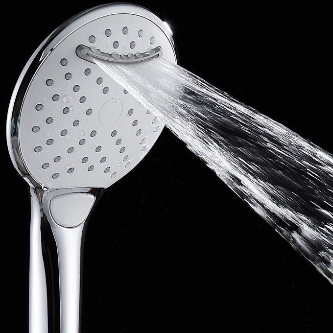 Douchette ACS 3 jets : pluie fine, pluie dense, massage + cascade avec bouton pour le changement de jet.