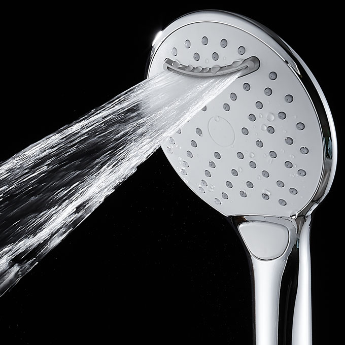 Douchette 3 jets : jet pluie fine, cascade, pluie fine + cascade.