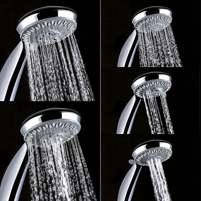 5 jets : pluie, pluie dense, massage, pluie + pluie dense et pluie + massage.