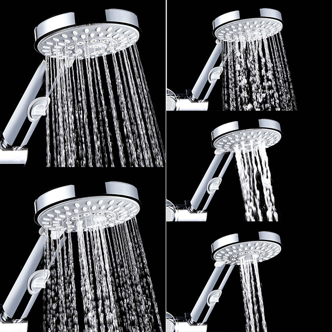 5 jets : pluie, pluie dense, massage, pluie + pluie dense, pluie + massage.