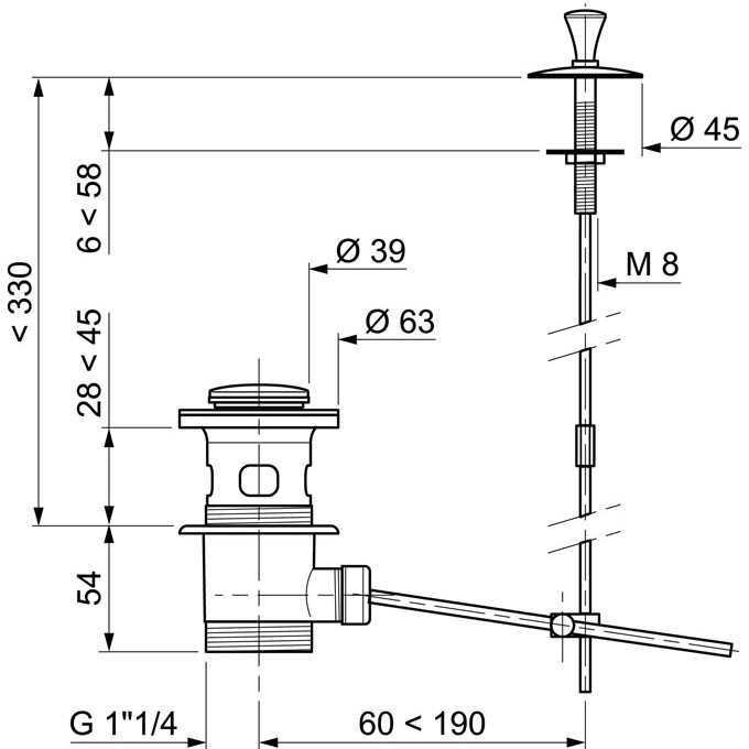 Bonde à fermeture à tirette.