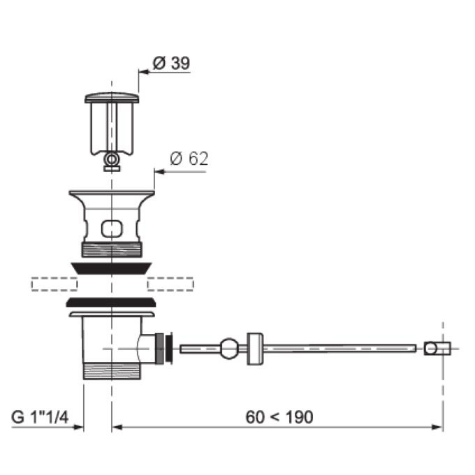 Bonde de lavabo sans tirette pour fermeture à tirette