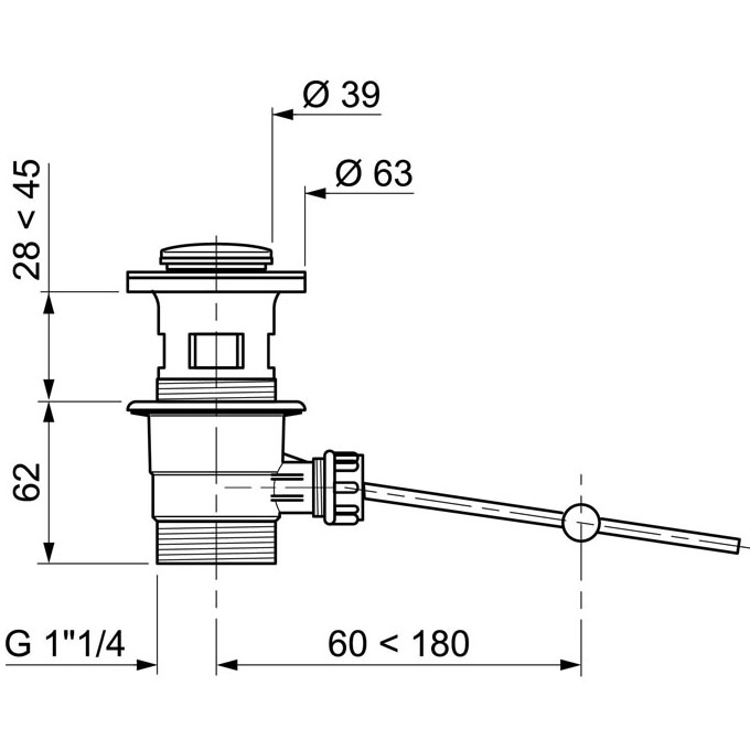 Bonde de lavabo sans tirette pour fermeture à tirette