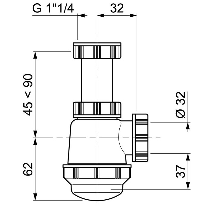 Siphon de lavabo réglable à culot court