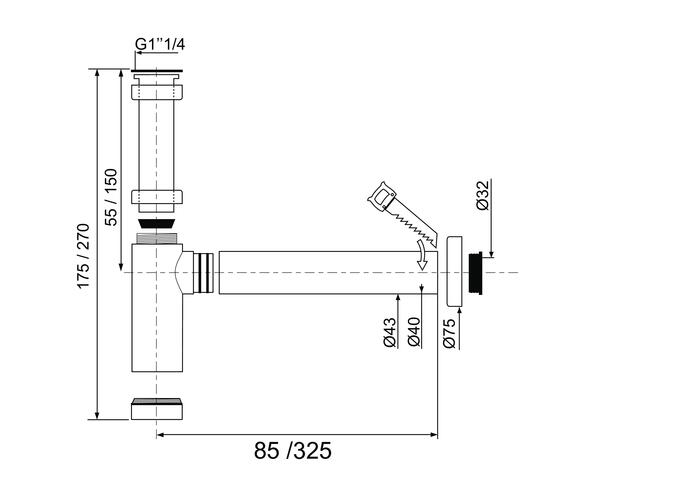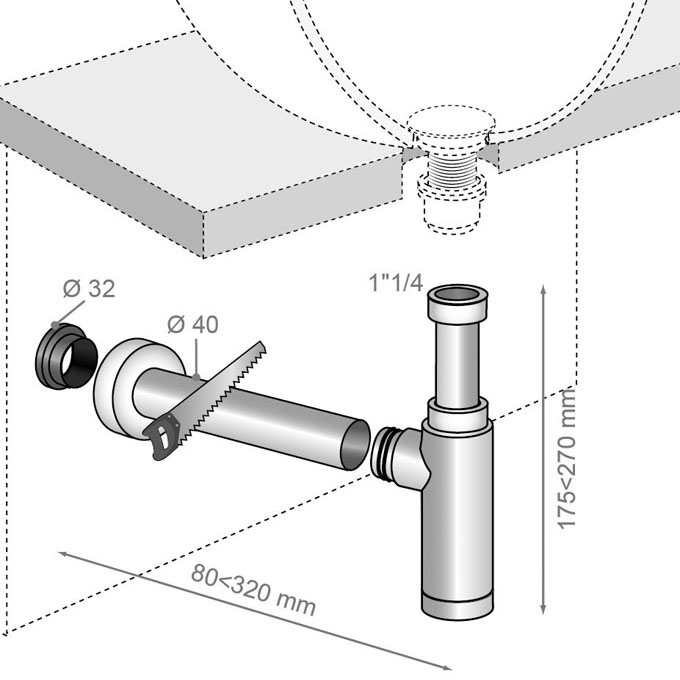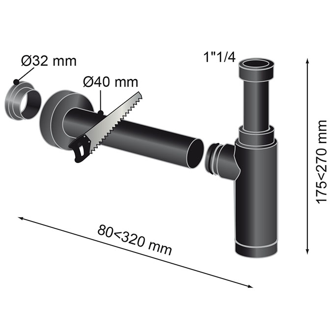 Siphon réglable en hauteur de 175 à 270 mm.