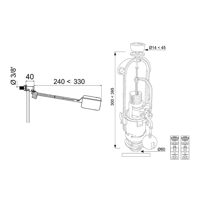 MVB + F12, mécanisme de wc double chasse à étrier + robinet flotteur latéral