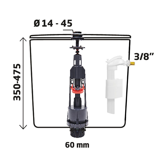 AQUACONTROL + F90, mécanisme de wc chasse interrompable + robinet flotteur alimentation latérale