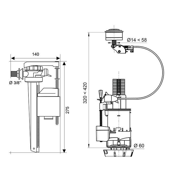EASY + JOLLYFILL, mécanisme de wc double poussoir à câble avec robinet flotteur
