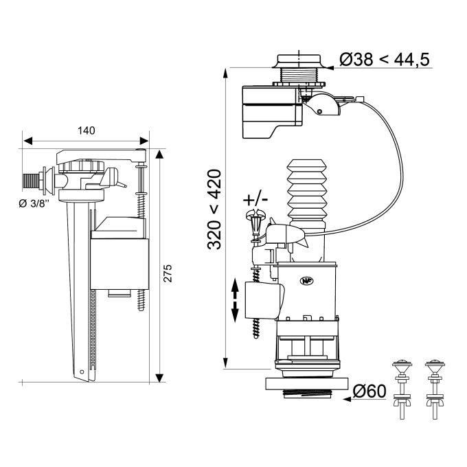 Hauteur de réservoir : de 320 à 420 mm.