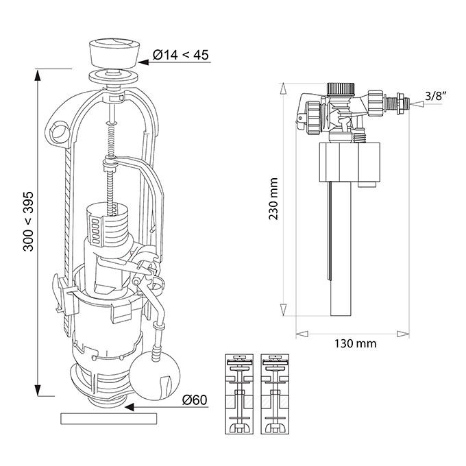 MVB + F89, mécanisme de wc double chasse à étrier + robinet flotteur latéral