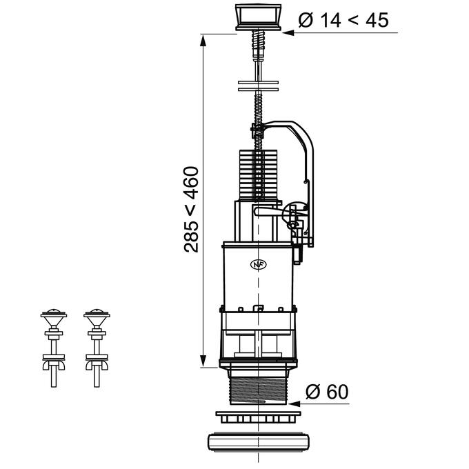 MP00, mécanisme de wc simple chasse à plateaux