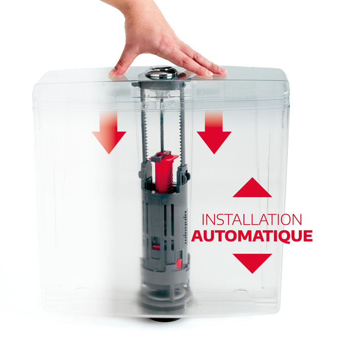 MONTAGE RAPIDE : système breveté pour s'adapter automatiquement à la hauteur du réservoir.