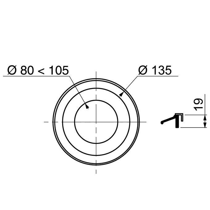 Embout de sortie de cuvette Ø80 mm à Ø105 mm.