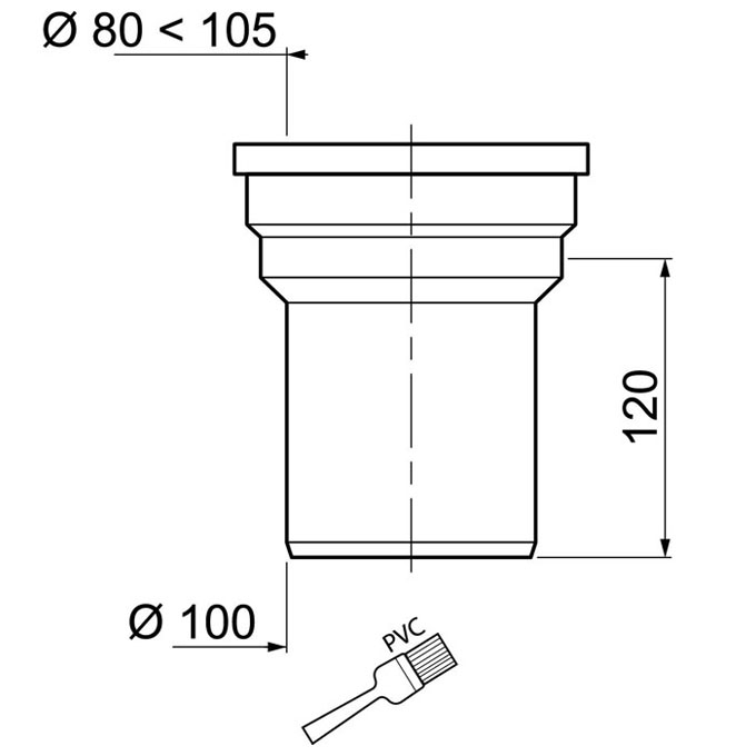 Embout de sortie de cuvette Ø80 mm à Ø105 mm.