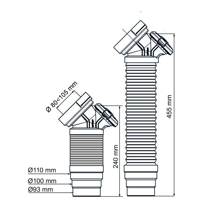 Sortie de cuvette Ø80 < Ø105 mm.