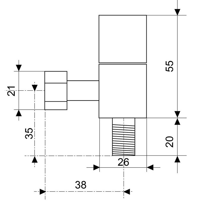Robinet d'arrêt carré en laiton massif chromé.