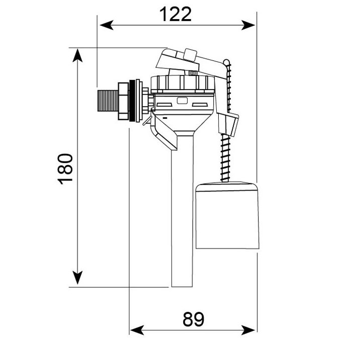 Lorsque la chasse est actionnée :1 - le flotteur se déplace le long du corps du robinet,