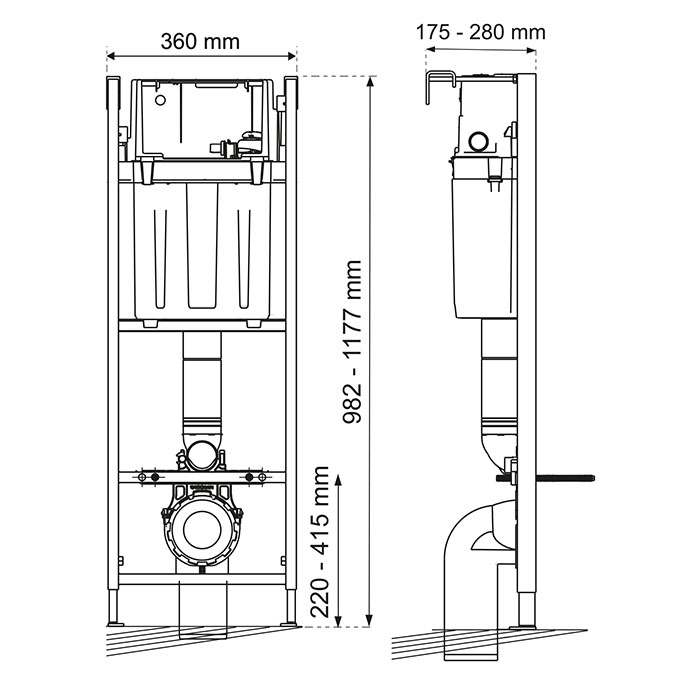 Réglage de la hauteur de cuvette : 40-52 cm.